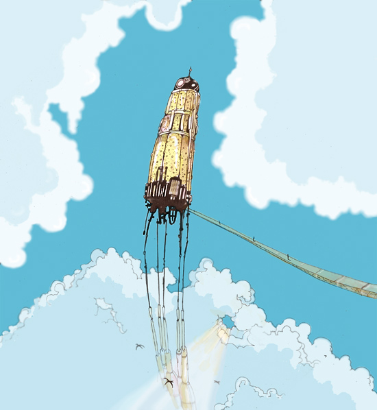 С одной стороны хочется сразу выговорить что лучи пробиваются сквозь облака почему-то только в одном месте и нахождение источника их непонятно, в перспективе только один объект - вроде бы мостик, но откуда и куда он ведет - непонятно, непонятно что это за объект, его природа, его масштабы, почему облака выглядят так будто мы смотрим на них снизу а объект при этом,наверное,- он всетаки виден сбоку... Обычные самопроизвольные вопросы.