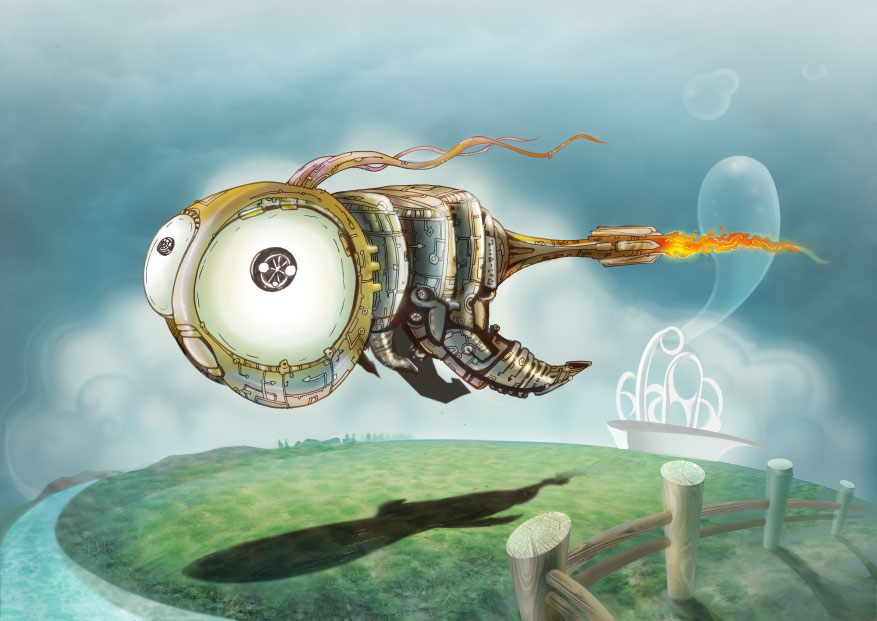 Интересная работа! Судя по названию, а также по горящему шлейфу он должен был бы двигаться очень быстро — а он в таком размеренном, неторопливом полете, ощущение, что сейчас пару раз перевернется томно в воздухе и, нежась, плавно полетит на спинке:)) И "глазки" смотрят в никуда, сквозь пространство… Очень симпатичный механоид, — в альбом! |